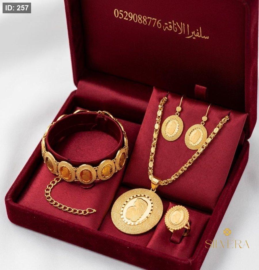 طقم تعليقة رش السكر مع حلبي ناعم وسوارة وحلق وخاتم