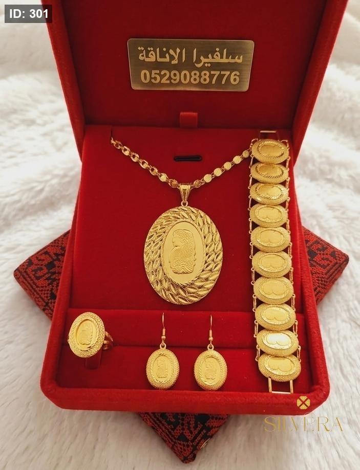 طقم تعليقة اونصة مع سوارة سفط وخاتم وحلق