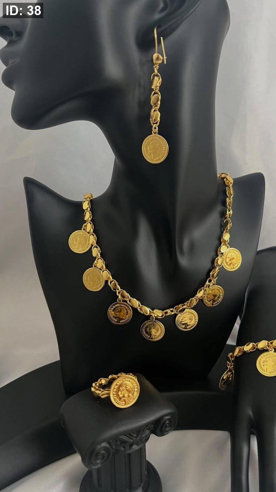 طقم ليرات 4 قطع عقد وسوارة وخاتم وحلق